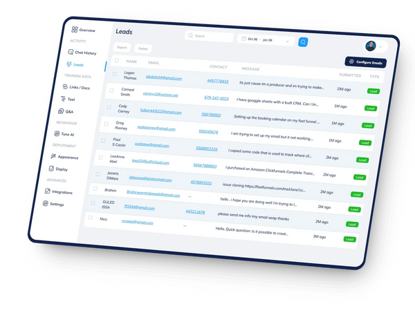 With SIMPLEF.AI, lead collection is effortless by allowing your chatbot to gather contact details directly from users during conversations.
